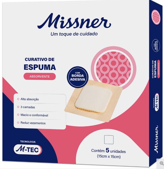 O Curativo de Espuma Absorvente com Borda de Silicone M-TEC mantém um ambiente úmido para ajudar no processo de cicatrização de feridas moderadas a muito exsudativas.