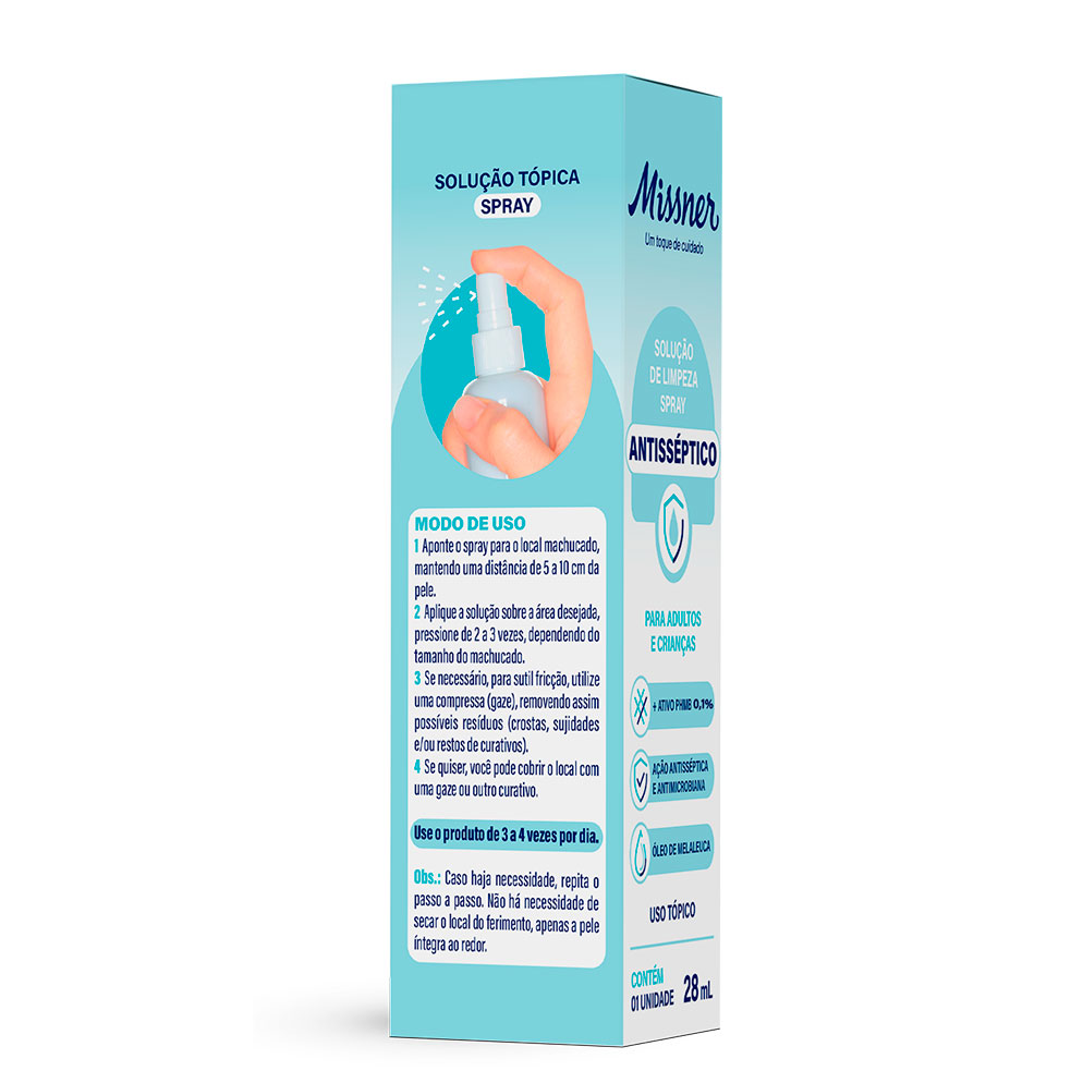 Desenvolvida para oferecer uma limpeza eficaz e segura. A Solução Spray Antisséptico Missner é indicada para a limpeza, descontaminação, tratamento e hidratação de feridas agudas e crônicas contaminadas.
